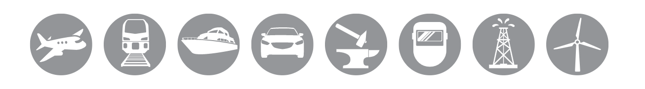 Transportation – Aerospace, Rail, Marine and Automotive; Metalworking and Metal Fabrication – Welding, Tool and Die, Castings and Foundries; Energy – Oil and Gas, Wind Turbine.