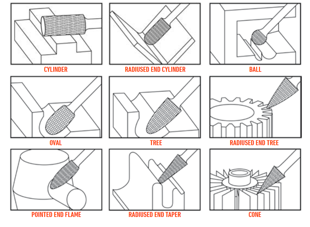 Carbide rotary burrs are ideal to cut, shape, grind and remove sharp edges, burrs and unwanted material.